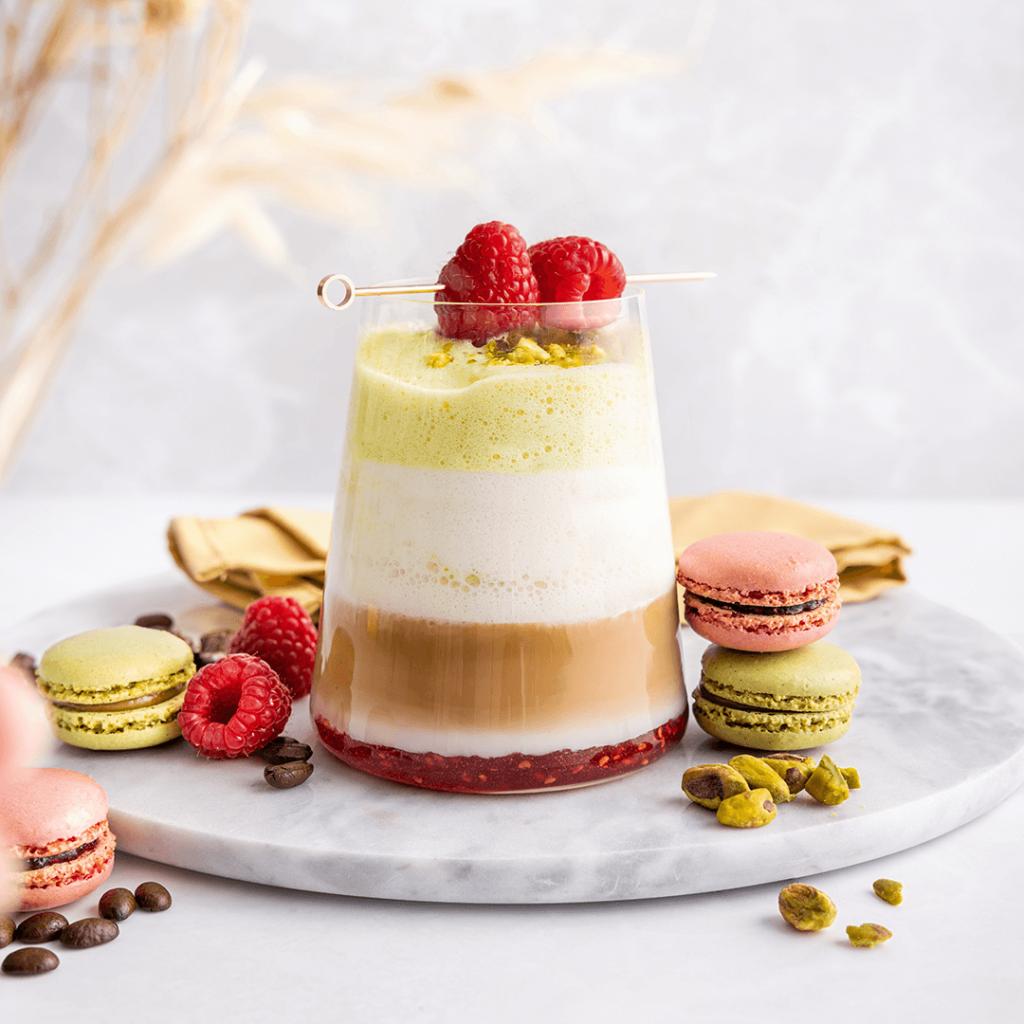 Met Café Intención koffie maak je naast de populaire café crème en cappuccino ook (h)eerlijke koffierecepten om jouw gasten mee te inspireren. Laat ze nu nog vaker en langer genieten van jouw favoriete koffiesmaak met de verrassende specials van Café Intención waaronder deze overheerlijke recepten. Van de verrassende Latte Macchiato á la Framboise tot de Special ijskoffie met chocolade slagroom . Met deze recepten serveer je voor ieder moment wat bijzonders.